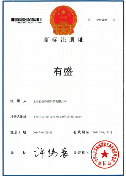 上海有盛凈化商標注冊證