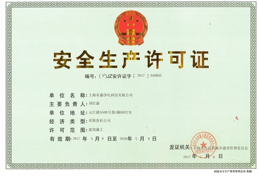 上海有盛凈化安全生產許可證