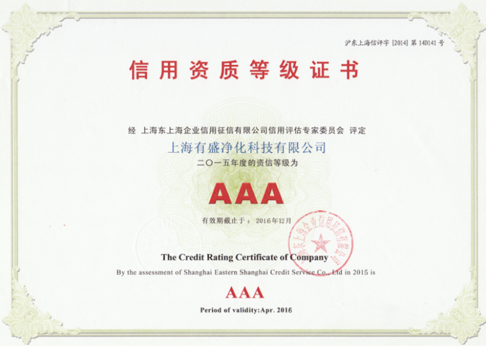 上海有盛凈化信用資質等級證書